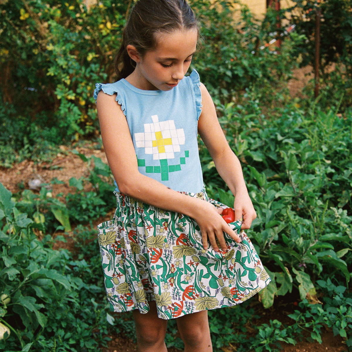 BOBO CHOSES - Pixel Flowers all over ruffled top