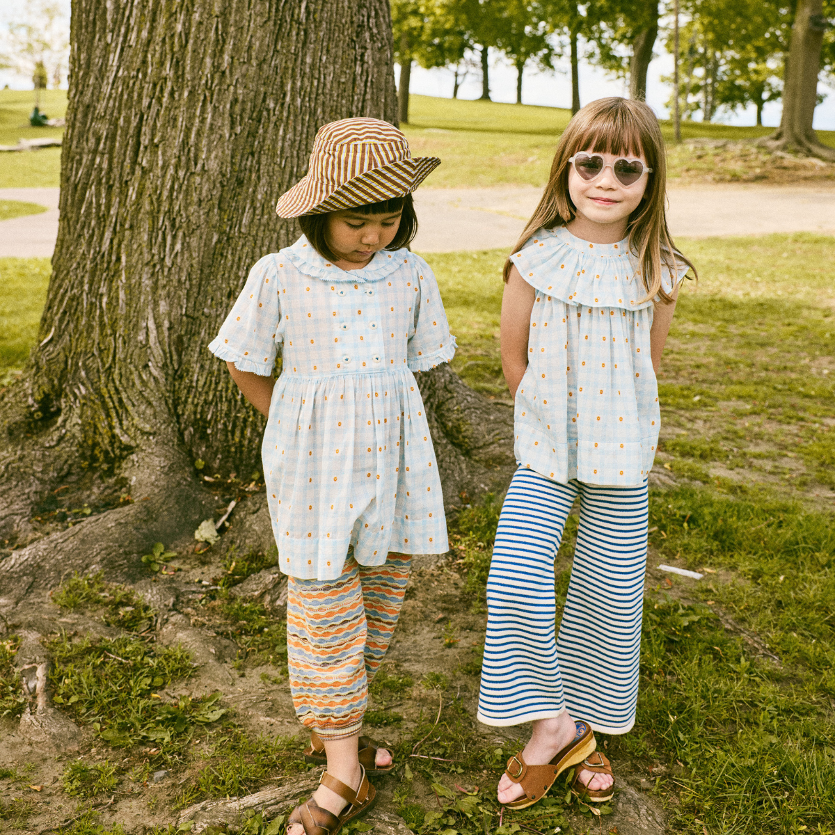 26SS archive 2014年に、2児の母で元ファッション・ジャーナリストのティフェンがフランスにて設立。パリで暮らし、旅を愛する小さな女の子をイメージ。 旅先の風景や愛読書、絵画、映画などから着想を得て、ほどよくレトロで肩の力の抜けたシックなスタイルを提案しています。 オリジナルのプリントや刺繍はすべてパリでデザイン。 幾度ものフィッティングを重ね、子どもたちが心地よく自由に遊べる着心地を追求しています。